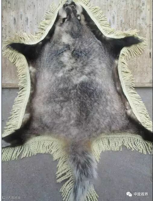 獾皮背部针毛长而光亮,从尾到头分别呈白色、棕色、白色,绒毛灰白稠密。
