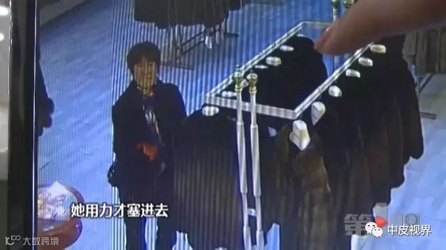 这名女子将衣服取下,令人吃惊的是,她竟然将衣物塞进了自己的裤裆里,由于衣服太大,表情还不由自主地抽搐了一下。