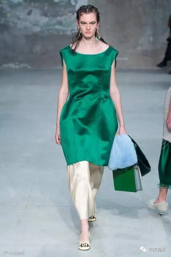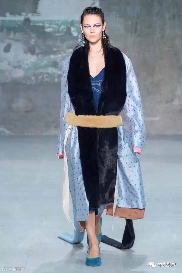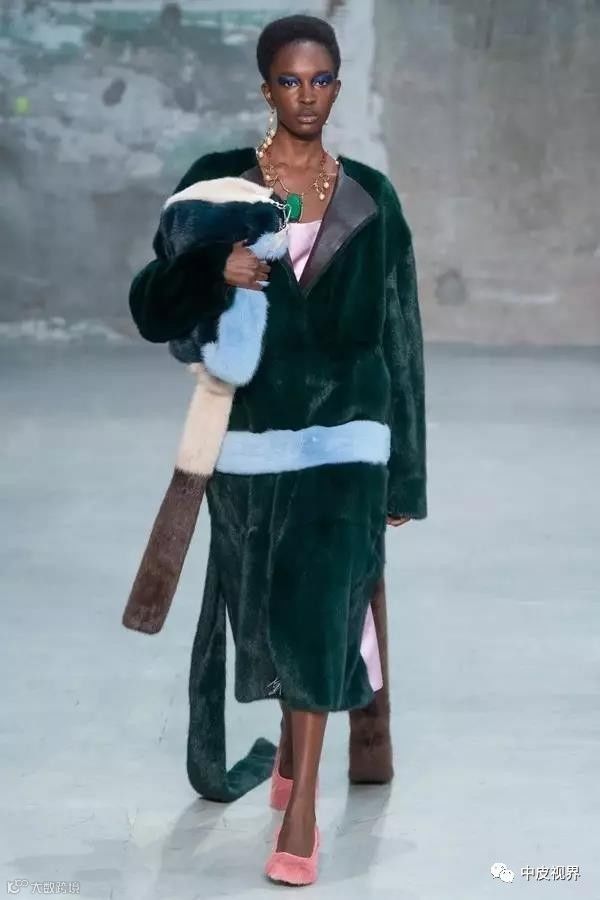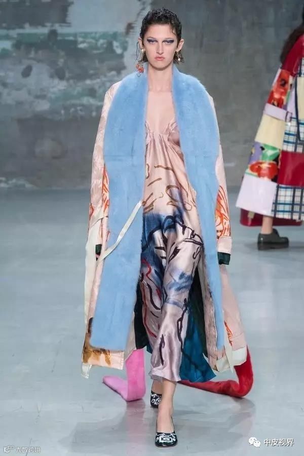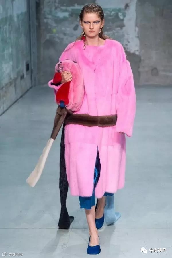 MARNI一直关注于对独立时尚女性的描绘,2018春夏系列MARNI用随性的毛边、宽松的造型搭配及地的腰带、阔气的毛领来彰显当下时尚女士的豪放与硬朗,同时柔和的粉色、精美的皮草绣花又为这份硬朗增添几分柔美。