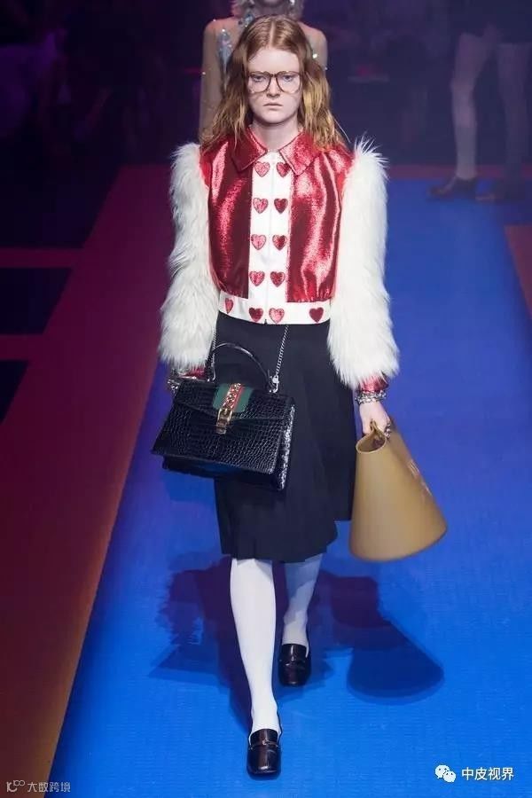 GUCCI的首席创意总监Alessandro Michele依旧沉溺于其复古情怀之中,本季春夏系列带我们回归到七八十年代盛极一时的迪斯科风格的俏皮可爱。皮草与带有强烈时代气息的设计元素相融合,而碰撞出一种全新风味的复古潮流,在多元化的时尚消费的大环境中,Alessandro Michele不仅给观众与消费者带来视觉享受与华丽衣装,更是为整个时尚生态圈注入一股生生不息的动力。