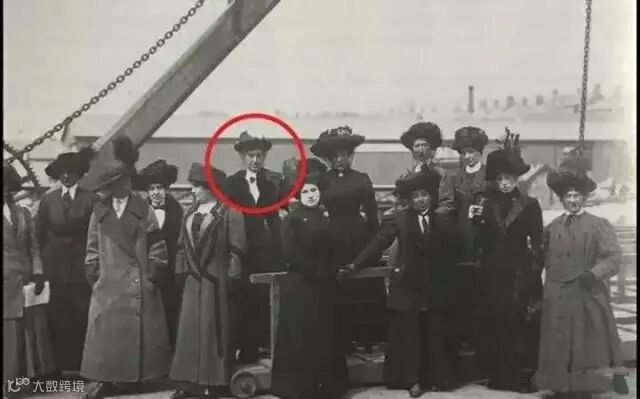 泰坦尼克号成武人员合影,圆圈中的就是当时33岁的头等舱乘务员班内特