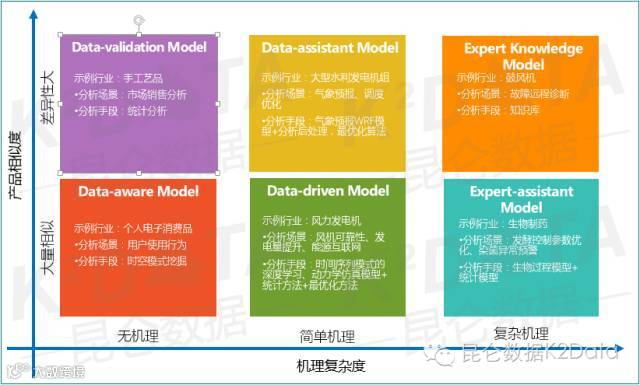 数据分析本质上是一种统计手段,需要足够的样本才有可能发挥显著作用。另外,数据分析作为探索未知的一种技术手段,它的作用也与机理复杂度密切相关。这里从产品相似度、机理复杂度两个维度,将分析算法应用分为6类范式。