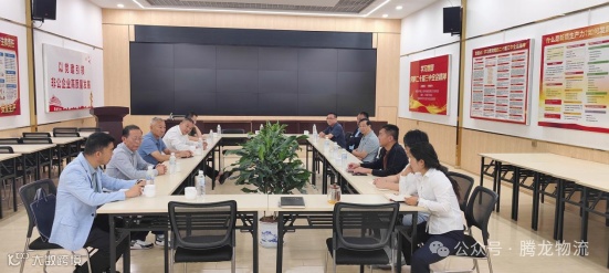 周二上午公司董事长携管理层同公司相关方客户领导在会议室开展业务交谈、合作洽谈等工作会议。