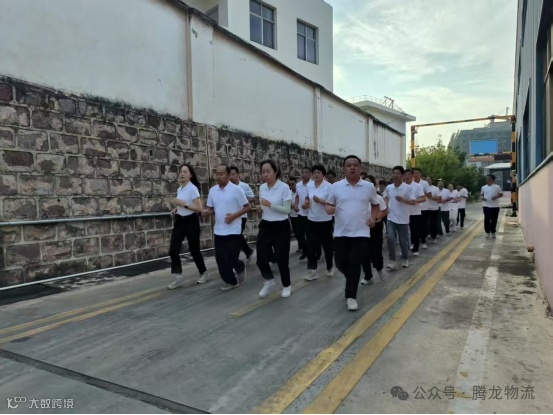 清晨凉爽的风伴着初生的阳光,一步一调,一圈一口号,腾龙人迈着铿锵有力的步伐跑出健康、跑向未来。