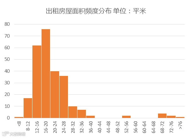 图15 赶集网“北四村”房屋出租面积频度分布