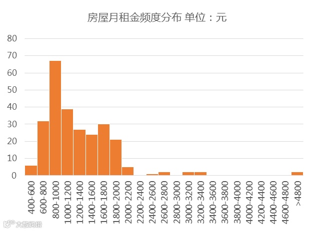 图14 赶集网“北四村”房屋月租金频度分布