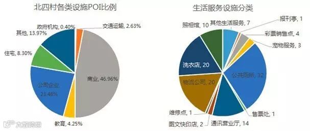 图16 北四村各类设施POI比例与数量