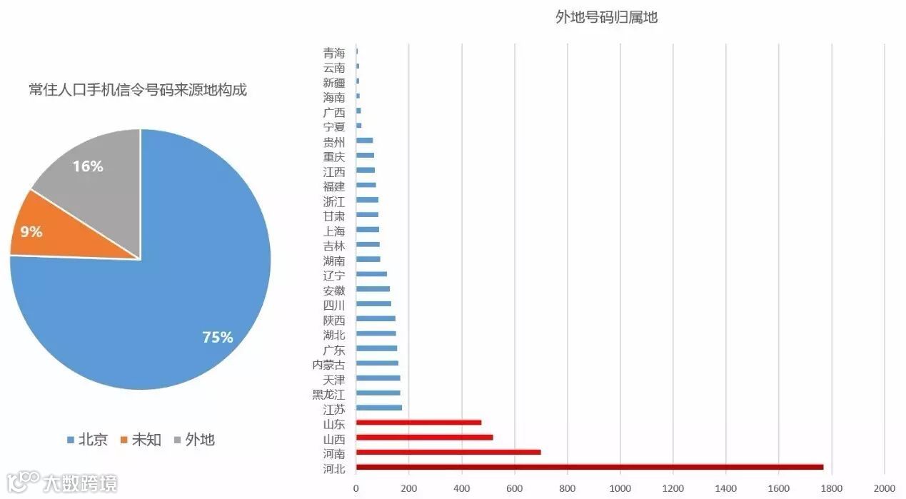 图5 北四村常住人口手机号码归属地