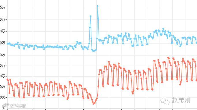 从中我们也不难看出,索引数据的增长虽然在每天都会有增长,但整体上来说还是时段性的,一段时间一个大涨(一次大的更新)。