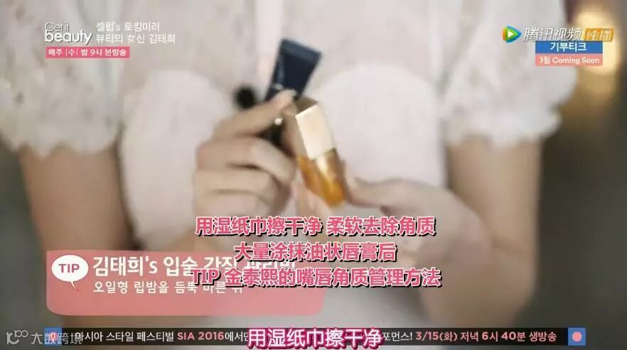 她还为大家提供了个小TIP, 大量涂抹油状唇膏后,用湿纸巾轻轻擦掉,就能有效去除嘴唇角质。
