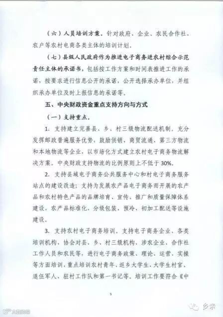 1、支持建立完善县、乡、村三级物流配送机制。充分发挥邮政普遍服务优势,鼓励供销、商贸流通、第三方物流和本地物流等企业,以市场化方式建立农村电子商务物流解决方案。中央财政支持物流的比例原则上不低于30%。