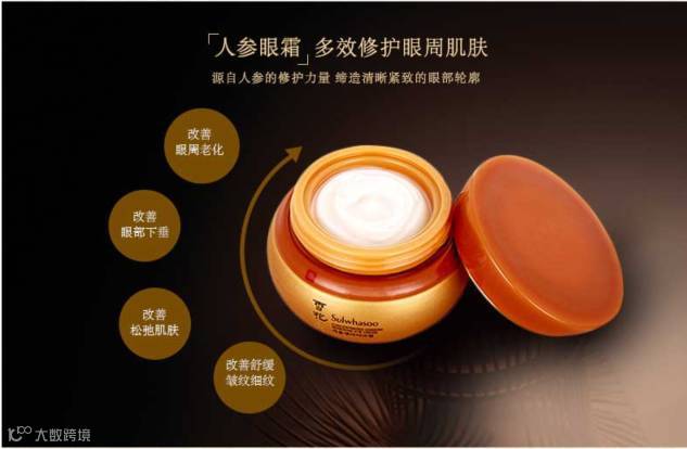雪花秀人参眼霜是他们家的明星产品,口碑很不错。其中含有人参根部与果实的核心成分,催进肌肤细胞再生,不仅为肌肤表面提供营养与水润,还赋予肌肤深层坚实、最佳的再生效果。雪花秀的人参眼霜,针对眼周肌肤老化、松弛变薄,从而引发的眼尾下垂、眼睛高度变化等多种老化问题。上述问题带来的不仅仅是眼部皱纹,更会引起眼部轮廓的变化,而眼廓的老化将直接引发眼尾松弛下垂、下眼皮松弛、上眼皮凹陷等老化现象,让眼睛看上去比面部肌肤年龄更显衰老。雪花秀「人参眼霜」以应对眼廓为首的眼肌老化问题,的确是很独特的保养理念哦!