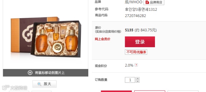 中国专柜售价:目前中国专柜没有这个套装,专柜滋阴水和滋阴乳单卖都是400元一瓶。