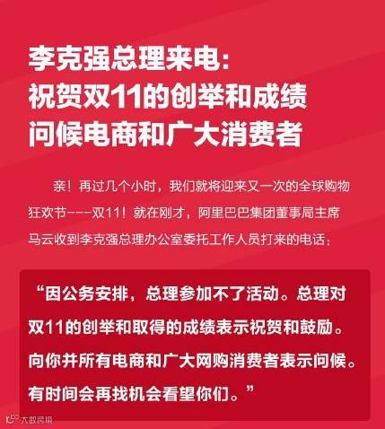 只要跟创业跟拉动经济有关的事儿,李大大都会非常支持。克强总理的对双十一的来电问候无疑是意外之喜,作份非常权威的品牌背书,品牌运营们肯定不会放过此次坚定用户剁手的机会,谁还在那bibi假货!。