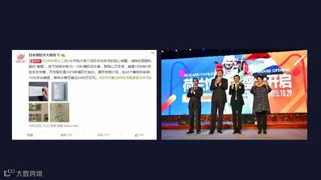天猫在10月21-10月31日的10天里每天推荐一个特色国家主题,涵盖了各国家和地区的吃喝玩乐。品牌运营们把微博作为系列活动主战场,先后与各个国家地区的旅游局、驻华大使馆等相关官方微博进行互动。甚至在10月19日,策划了荷兰国王威廉·亚历山大造访阿里巴巴西溪园区与马云老板共同启动荷兰国家馆的仪式。