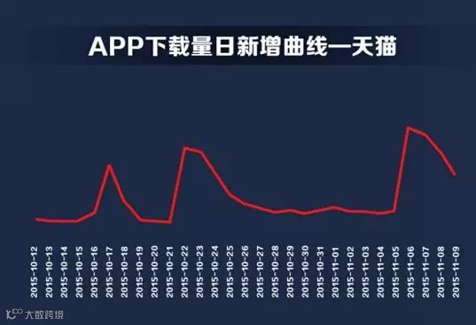 销售额,订单量,App下载量,前两项数据不再熬述,说说双十一前夕天猫app下载量的变化。