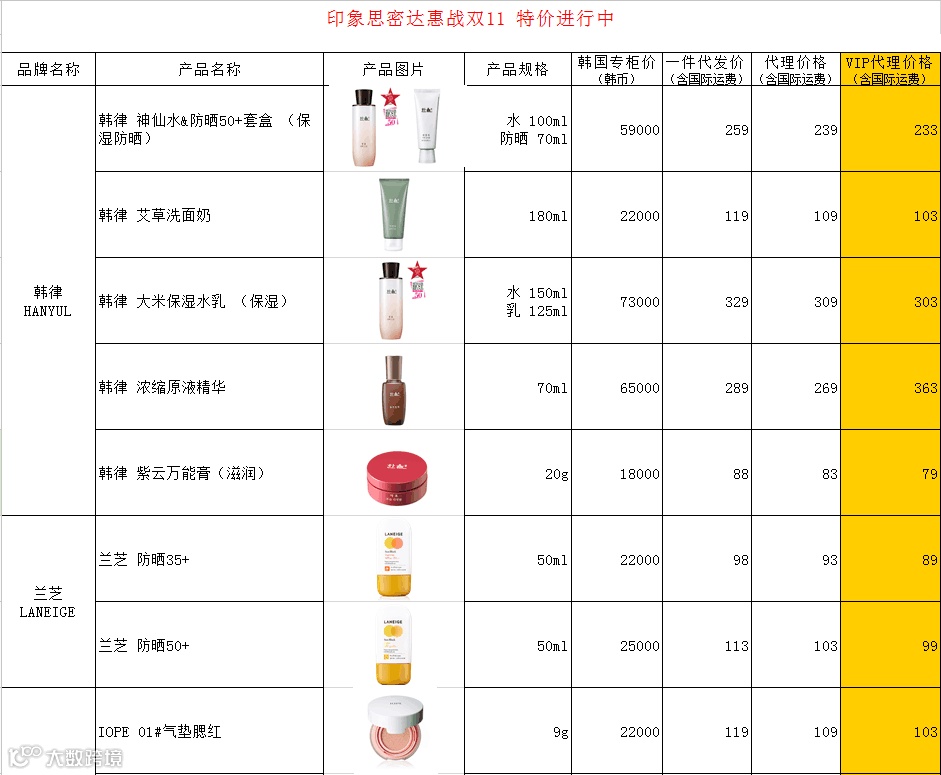 MY印象正品韩妆拥有兰芝,IOPE亦博,雪花秀,伊思,可莱丝,九朵云,马油,OHUI欧蕙和SUM37呼吸以及韩国各大爆款数百种商品,是韩国化妆品中小型代购领域最受欢迎和具有一定影响力的供货商之一。