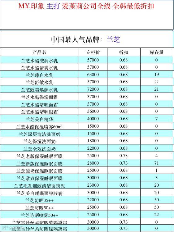 MY印象正品韩妆拥有兰芝,IOPE亦博,雪花秀,伊思,可莱丝,九朵云,马油,OHUI欧蕙和SUM37呼吸以及韩国各大爆款数百种商品,是韩国化妆品中小型代购领域最受欢迎和具有一定影响力的供货商之一。