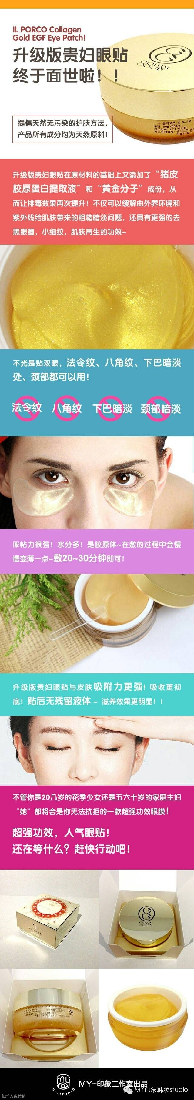 IL PORCO collagen Gold EGF Eye Patch! 神奇的升级版贵妇眼贴,一款你用过就会被它效果震撼到的超级眼膜王。效果直接秒杀一般的黄金眼膜,很多美容时尚杂志都有推荐,韩国出口日本一个月就破了50万个的月销量王。