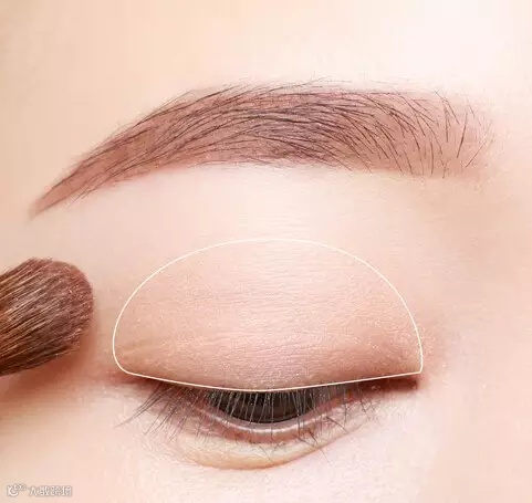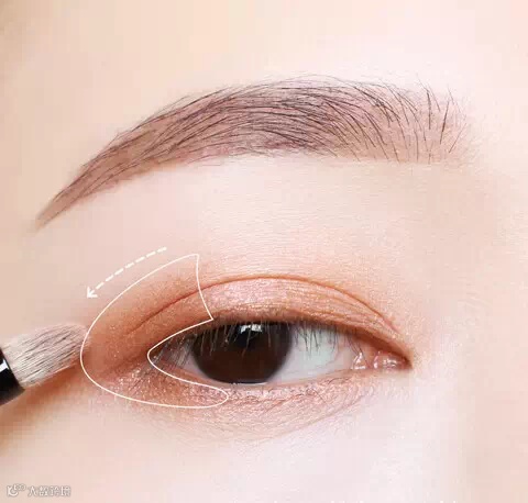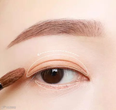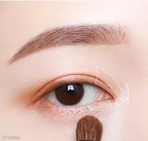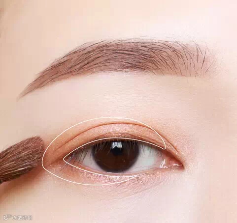 STEP3:浅橘棕色的眼影晕染在上下眼睑晕染,具体范围参照图片。