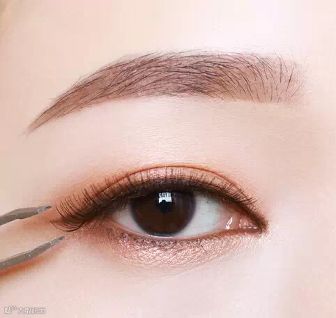 STEP10:粘上自然的眼尾加长加翘的假睫毛,然后再刷上睫毛膏就能拥有洋娃娃般的大眼睛了。