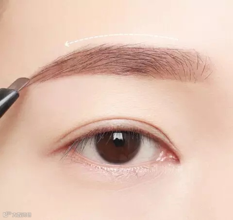 STEP1:顺着眉毛的纹理画出柔和的眉形,眉色尽量与肤色相搭配。
