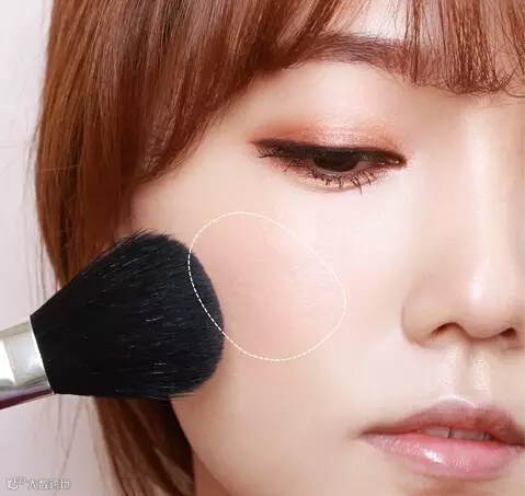 STEP12:再次蘸取粉色的腮红在笑肌中央位置轻轻按压,多层次的腮红不仅自然而且看上去更加粉嫩。