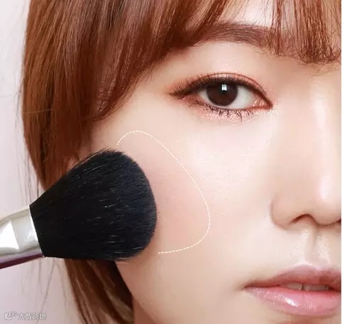 STEP11:大号的腮红刷蘸取粉色的腮红在笑肌靠外的位置晕染。