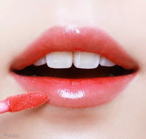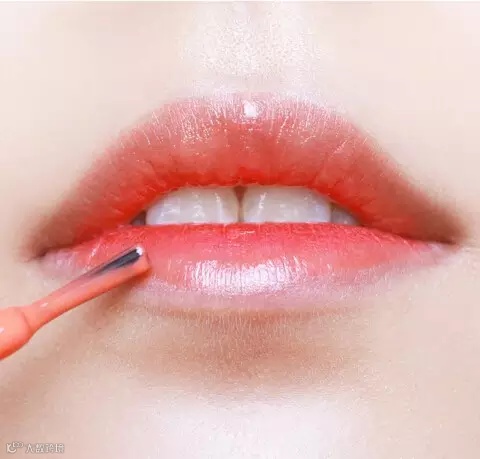STEP13:珊瑚红色的液体唇膏涂抹唇部,重点放在唇中的位置。