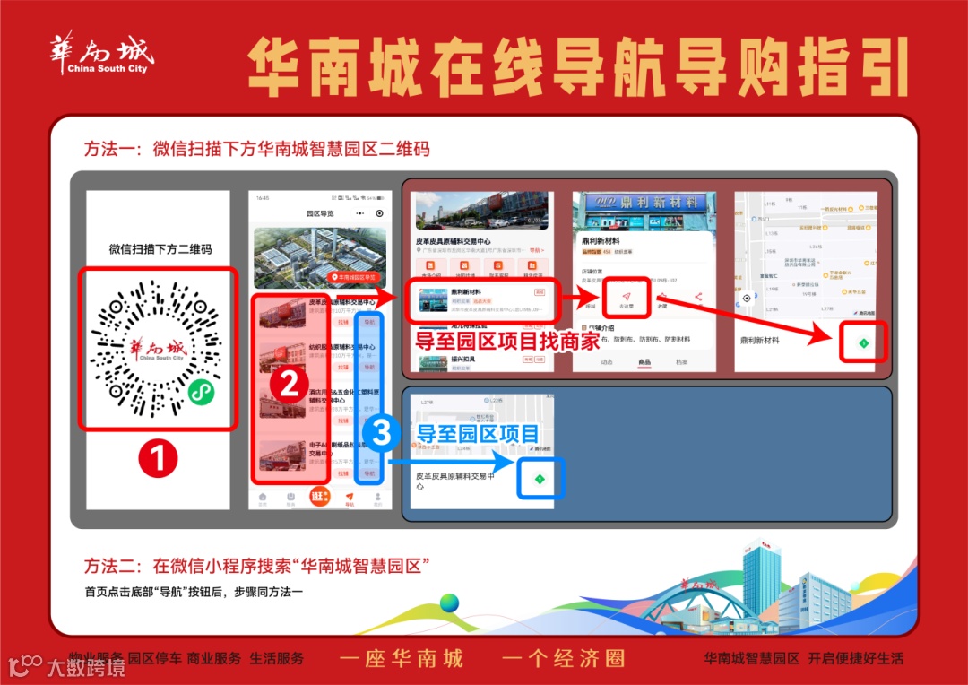 商业服务方面,为了让访客在华南城园区内畅行无阻的同时,发现更多优质商家,“华南城智慧园区”小程序更新了“在线导航”,访客可以使用园区导航更便捷逛市场,还能获取优质商户动态,了解最新新品上市、促销活动等,从而更好地规划行程和采购计划。