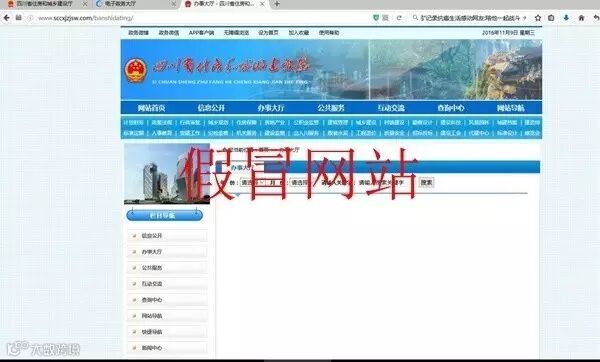 ,名为“四川住房和城乡建设网”,更叫人哭笑不得的是,这个假网站还给自己备注了“官网”字样,而正牌的四川省住建厅门户名为“四川省住房和城乡建设厅”,并没有官网字样。