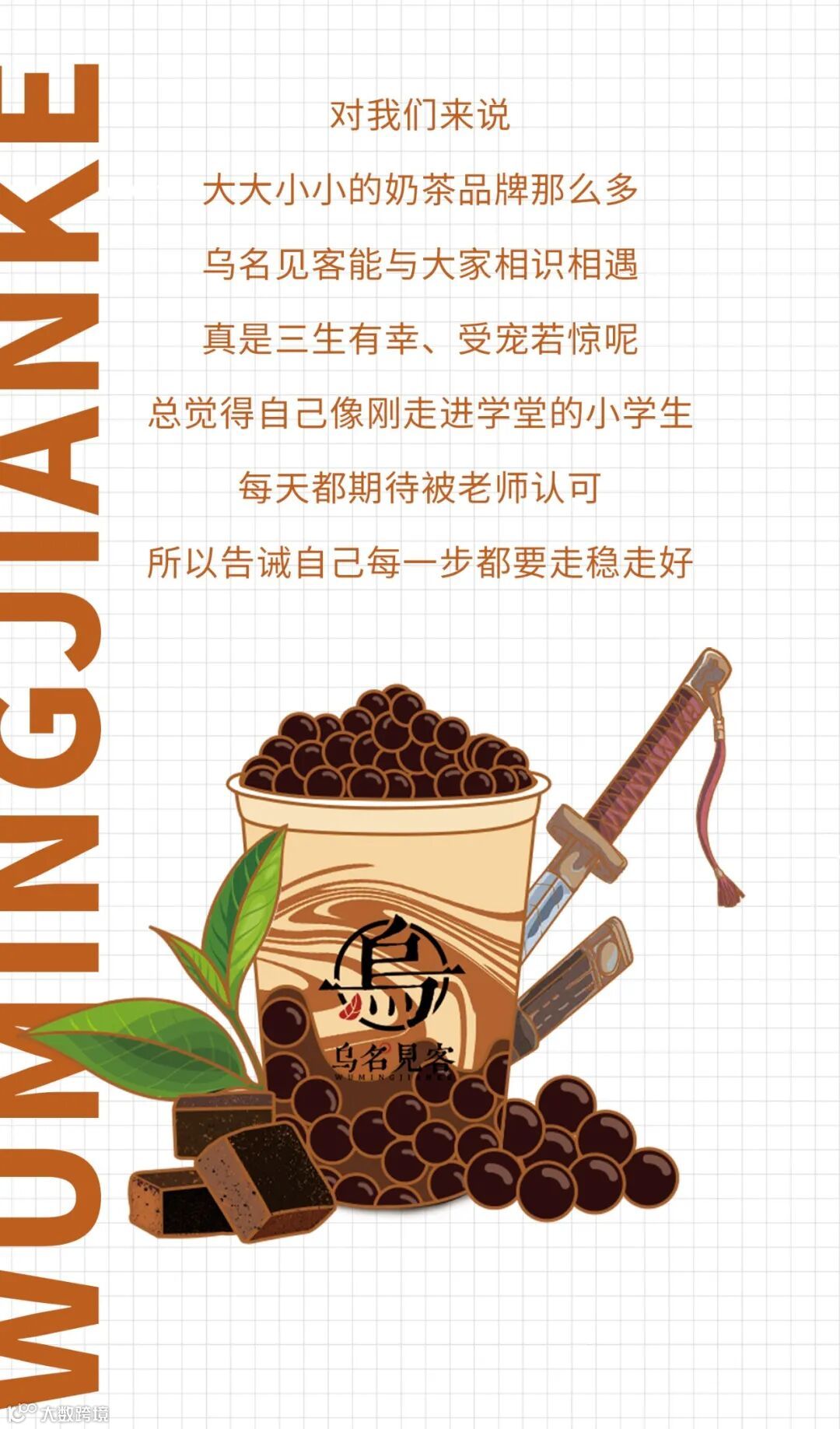 乌名见客是一家以潮流饮品推广、研发、管理为主的连锁茶饮品牌