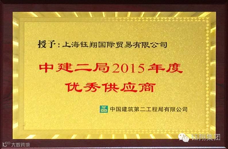多年来,钰翔国际与中建二局各单位保持着良好的合作关系,先后为郑州二七万达、银川西夏万达、浙江义乌万达、上海周浦万达、青岛万达文化旅游城、中原万达、银川永泰城、太原万国城、杭州远洋地产、烟台万达广场等多个项目提供了优质的建材配送服务,此次获奖是公司继2014年获得中建二局年度优秀供应商之后,再次荣获此殊荣,这与公司一贯坚持钰翔集团“追求阳光下的利润”的核心价值观,坚持“钢的信誉、铁的承诺”和“四个百分之百”的服务标准分不开。公司拥有雄厚的资金实力,坚持诚信经营履行社会责任,严格履行合同约定,每个项目均按照中建二局的要求通过公开投标并签订廉政协议,在中建二局供货与服务的及时性、供货与服务的质量、安全及文明施工、配合性、诚信经营等各项动态指标监测中,均取得了优异成绩。