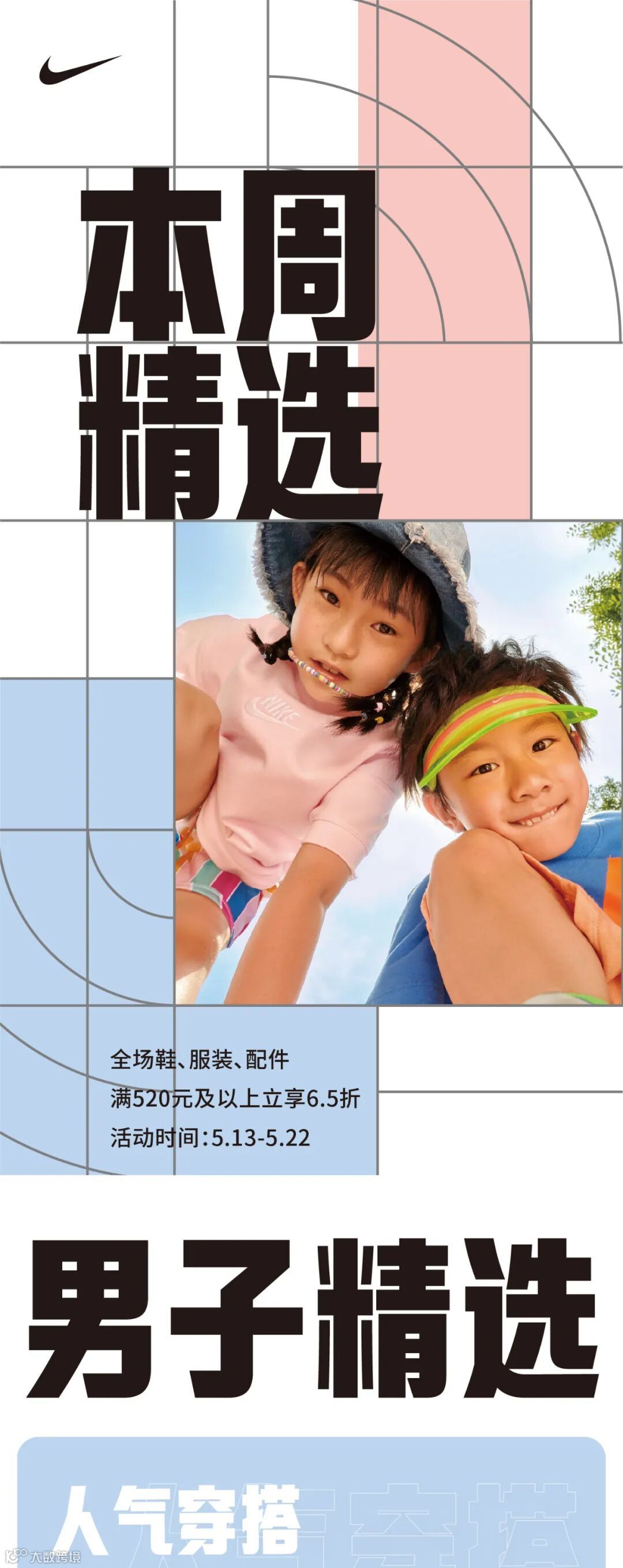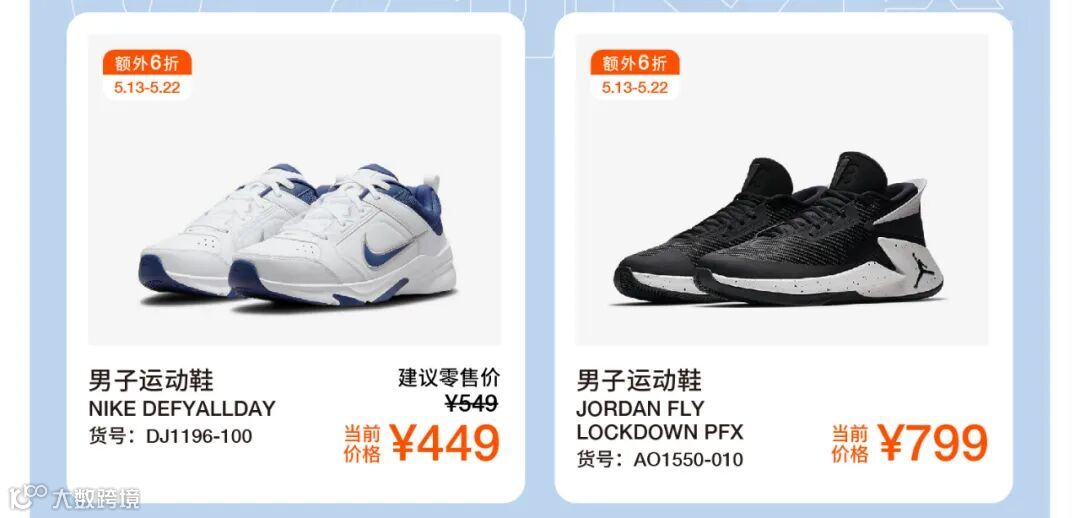 导读:全场鞋、服装、配件,满520元及以上立享6.5折,活动时间:5.13-5.22