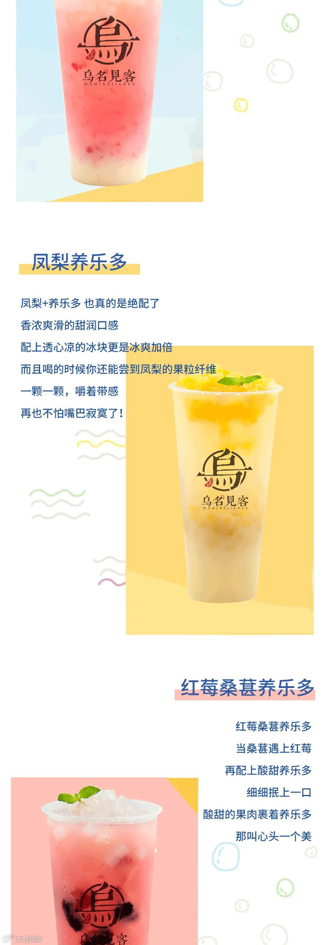 乌名见客是一家以潮流饮品推广、研发、管理为主的连锁茶饮品牌