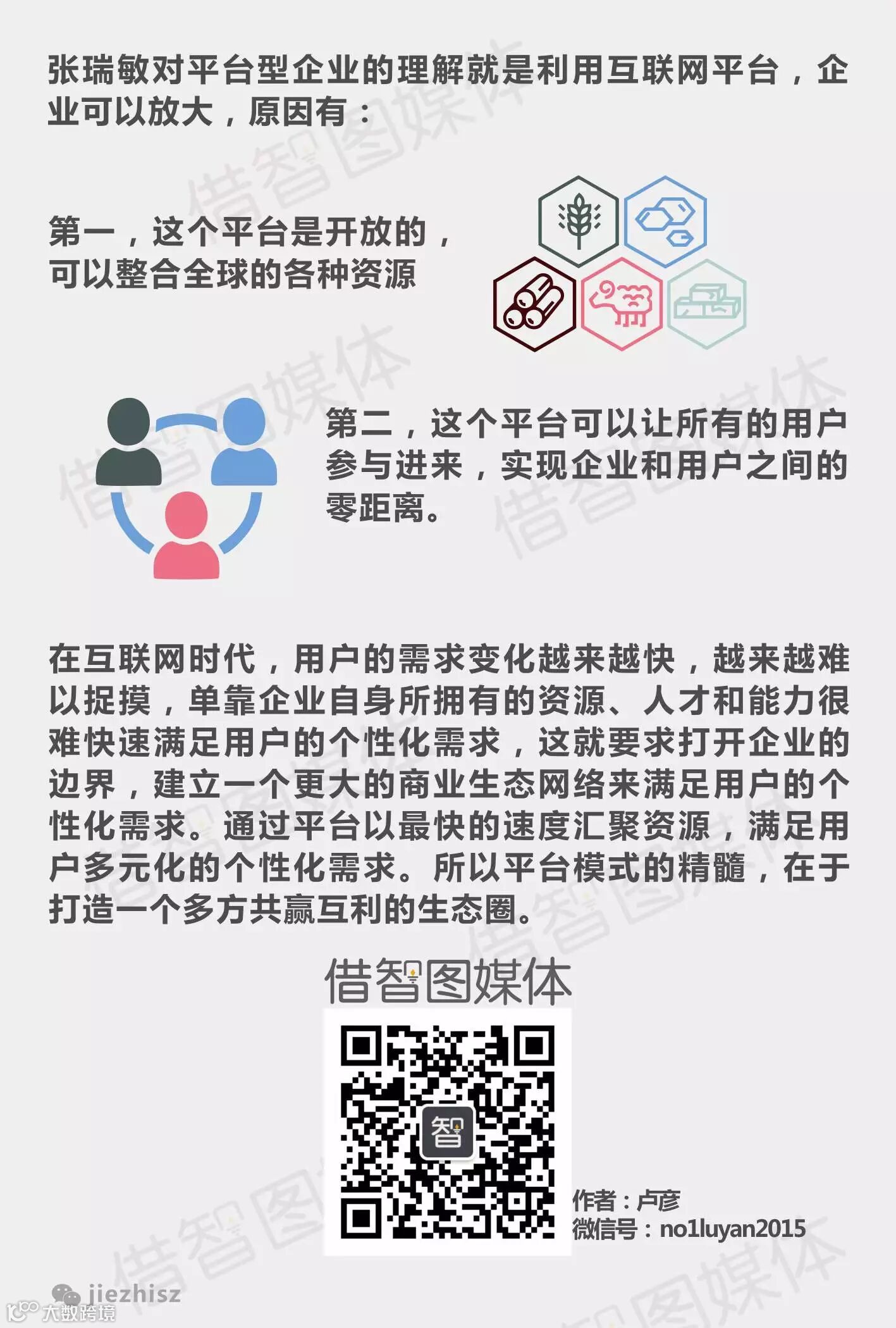 互联网的世界是无边界的,市场是全国乃至全球。平台型商业模式的核心是打造足够大的平台,产品更为多元化和多样化,更加重视用户体验和产品的闭环设计。