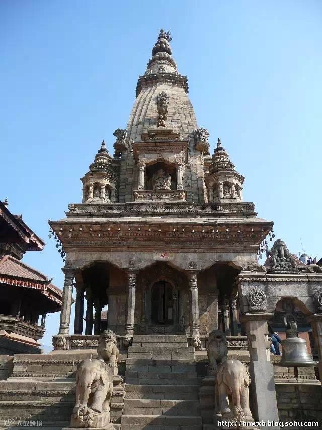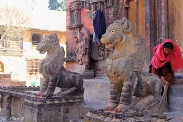 帕坦杜巴广场的这座神庙,建于16世纪,是供奉的毗湿奴神。台阶上有两只石狮子。