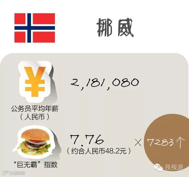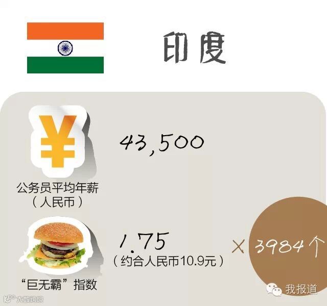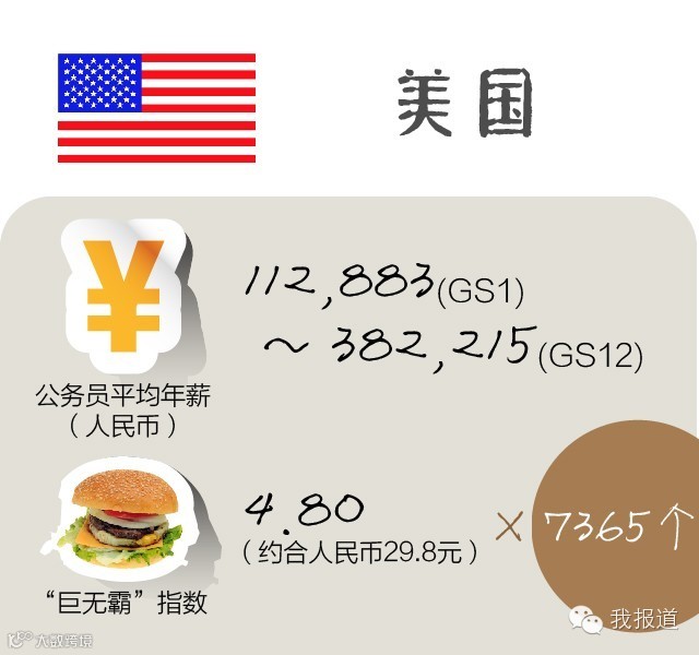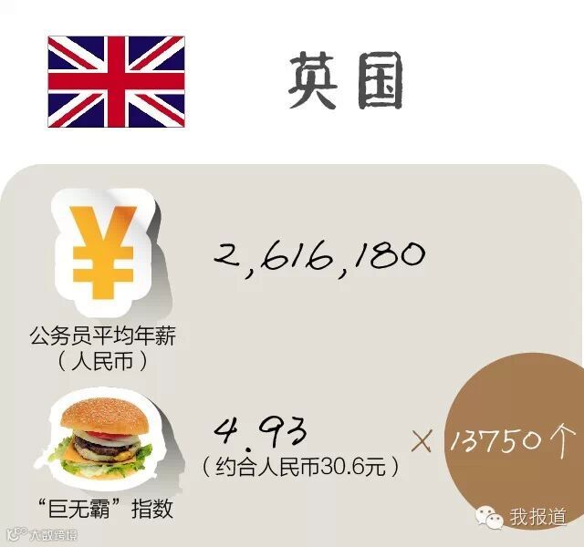 按照英国的“巨无霸指数”,公务员一年收入可以买13750个汉堡!