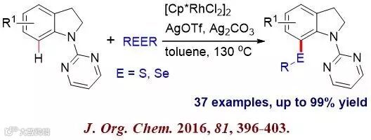 原文标题:Rh(III)-Catalyzed C7-Thiolation and Selenation of Indolines