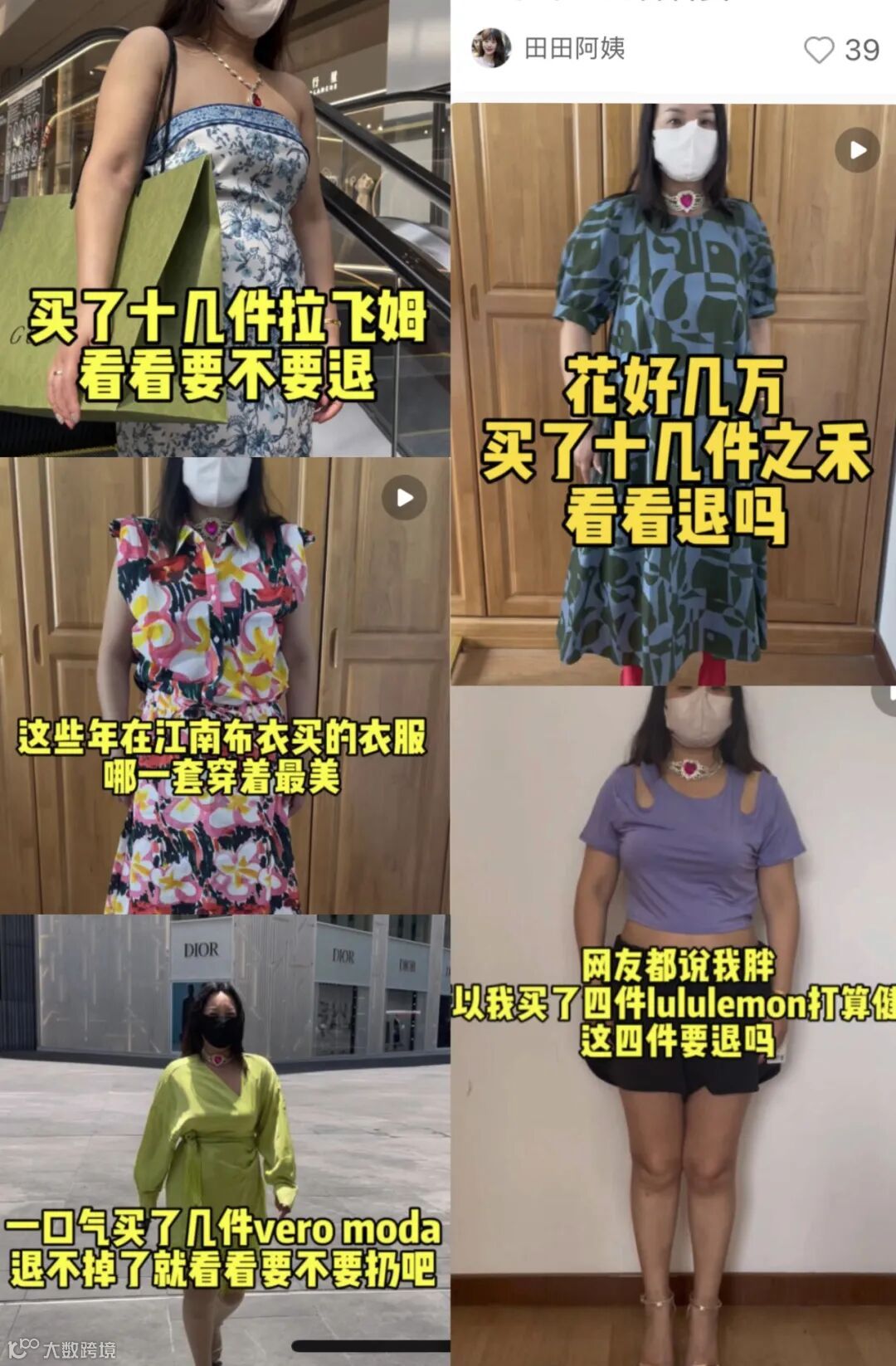 最近我也关注到上面提到的试衣博主:田田阿姨。在我的朋友圈里面,这个现象已经成为非常热闹的话题,因为她去穿的都是非常热门的服装品牌。