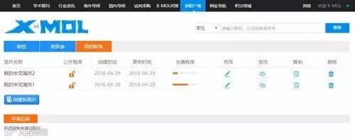 在X-MOL求职广场浏览到心仪的职位,如何快速将简历投递过去呢?下面就让小编带大家一起探索一下X-MOL求职广场的新功能:简历编辑与在线投递