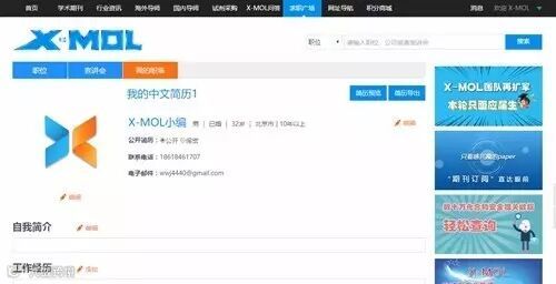 可以预览并导出简历(X-MOL UI美眉倾情打造的极其精美的word版简历,你值得拥有哦)