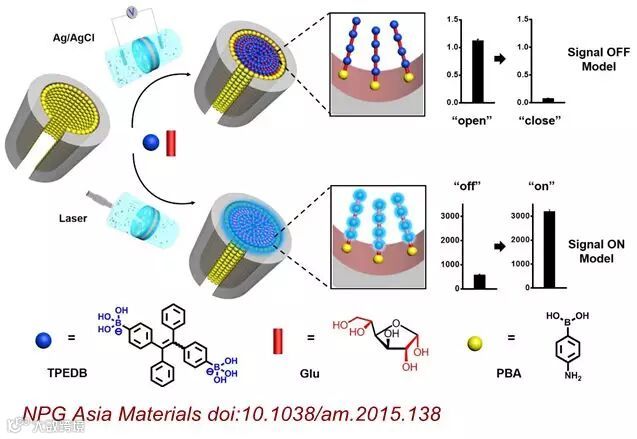 华中科技大学娄筱叮副教授等人采用具有聚集诱导发光(Aggregation-Induced Emission)效应的荧光分子,构建了一种电流和荧光双信号输出,更准确更微量检测尿糖水平的纳米器件。