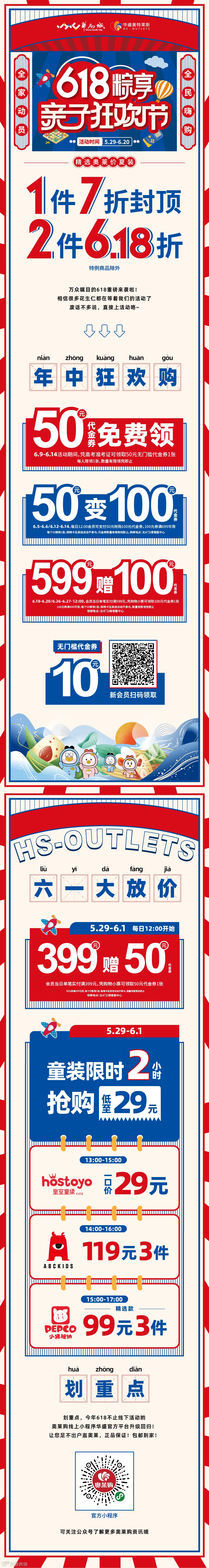 【618粽享亲子狂欢节】童装2小时限时抢~满399送50
