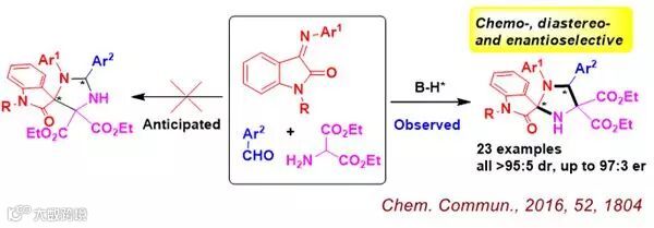 原文标题:Catalytic Asymmetric Chemoselective 1,3-Dipolar Cycloadditions of Azomethine Ylide with Isatin-derived Imines: Diastereo- and Enantioselective Construction of Spiro[imidazolidine-2,3'-oxindole] Framework