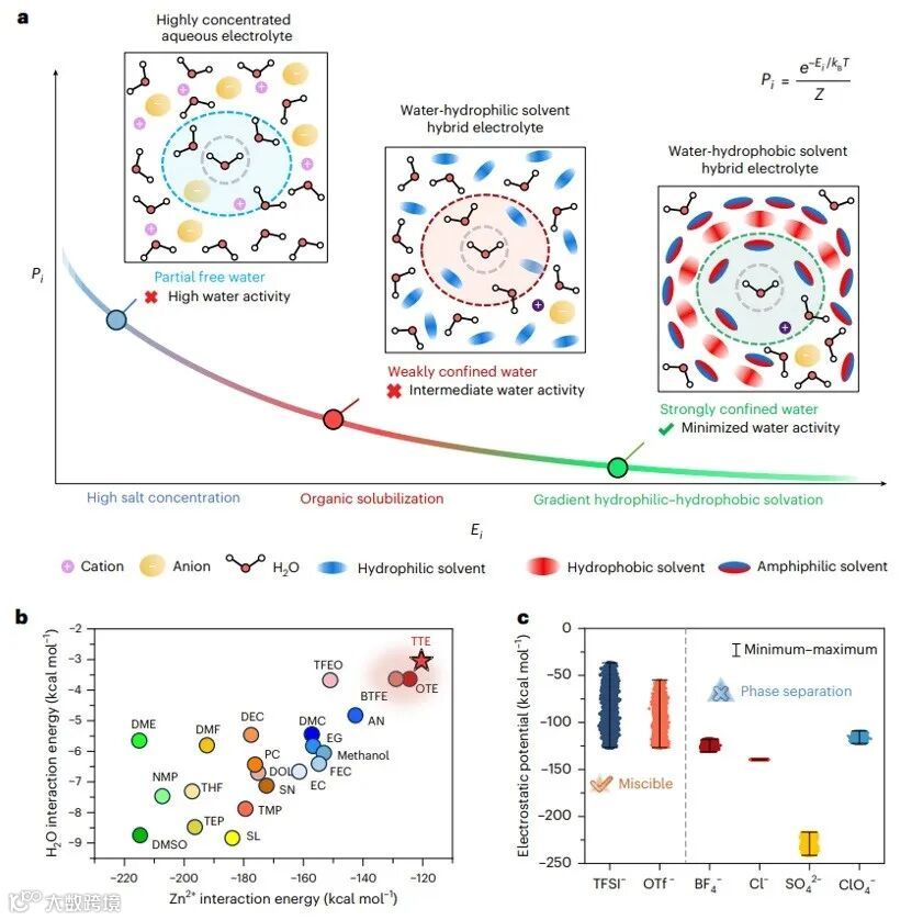 4. Nature Nanotechnology:纳米工程水-疏水混合液体电解质解决方案,适用于宽温度范围的高效锌电池