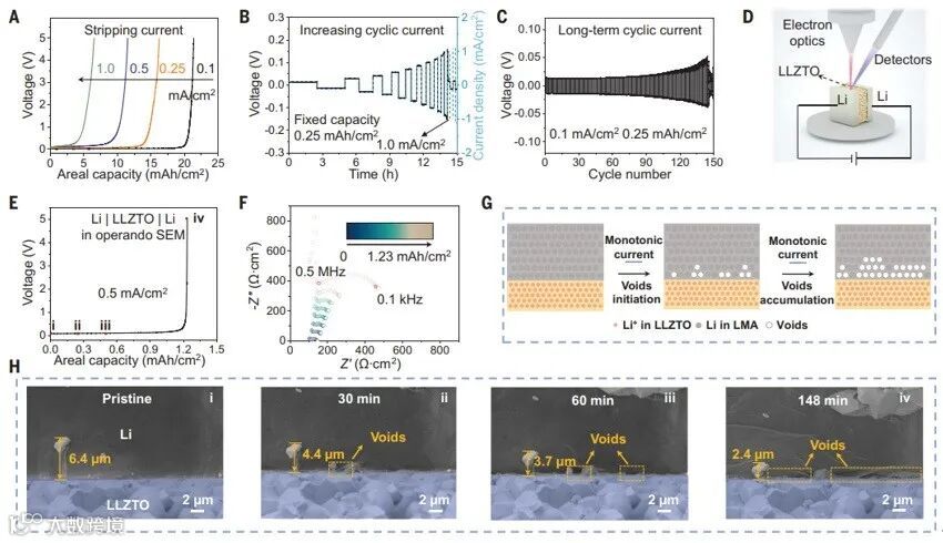 华中科技大学黄云辉和同济大学罗巍团队通过原位扫描电子显微镜(SEM)和相场模拟等技术,揭示了固态锂金属电池(SSBs)失效与锂金属阳极(LMA)疲劳之间的密切关系。研究发现,锂金属阳极在电化学循环过程中会经历疲劳现象,这种疲劳现象遵循力学中的Coffin-Manson方程,表现为锂金属内部逐渐产生微孔和裂纹,最终导致界面退化和电池失效(Science, 2025, 388, 311-316)。