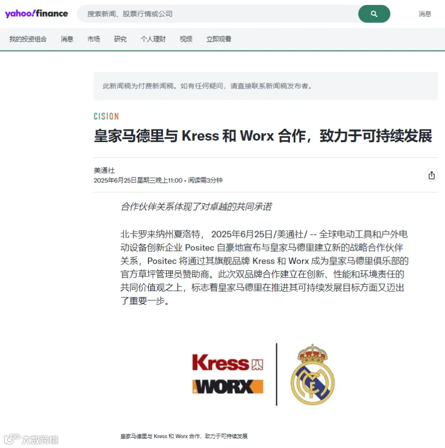 例如今年7月,头部园林出海品牌Worx母公司就通过媒体稿件宣布与皇家马德里战略合作,共同致力于推进可持续发展,进一步塑造了双方的正面形象。