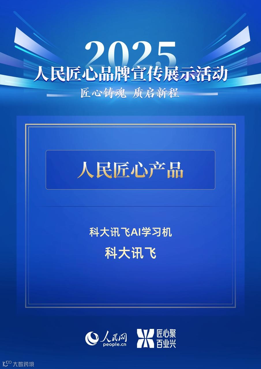 近日,由人民网主办的“匠心铸魂,质启新程”2025人民匠心品牌宣传展示活动圆满落幕,科大讯飞AI学习机荣获“2025人民匠心产品”称号!
