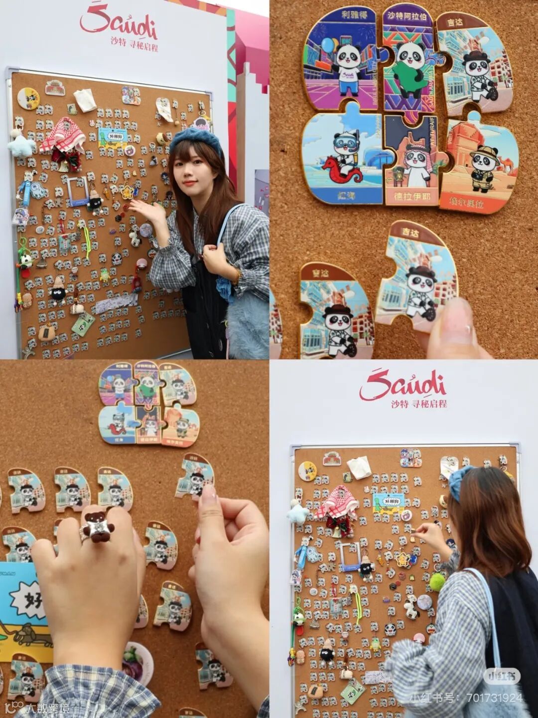 A:每个人带来交换的徽章都会有一段自己的故事与记忆,有一个令我印象深刻的游客带来了一款2010年上海世博会的“海宝”徽章,他告诉我这是他当年在世博会上收藏的,并且当时他参观了沙特馆,那是他第一次认识沙特,他想用这一个承载了他与沙特独特记忆的徽章,来换取一份关于沙特的新的记忆。他的这次交换让我感到非常感动,我也希望更多人可以与沙特一起留下美好的新记忆。